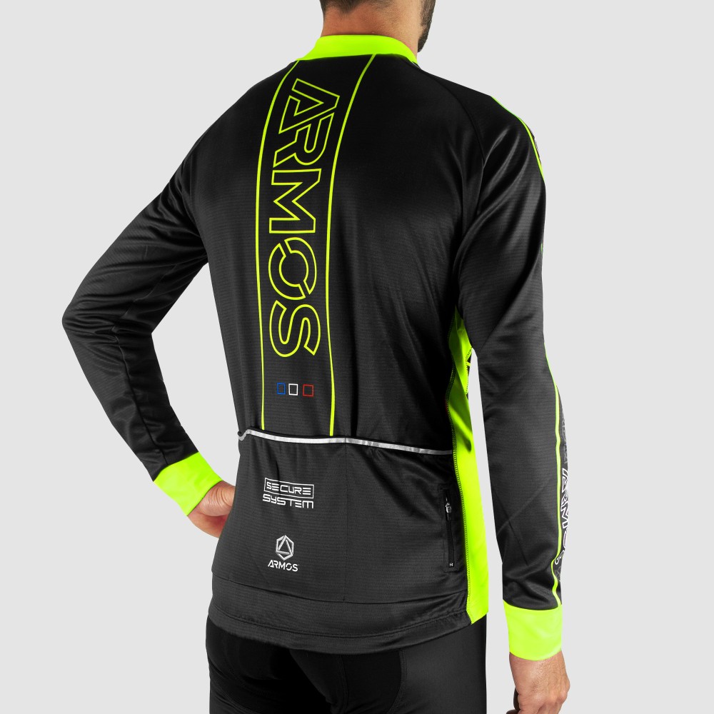 La collection ARMOS NEON est spécialement dédiée aux athlètes qui recherchent des produits performants et visibles. Ils possèdent un design avec des couleurs fluo et des liserés réfléchissants pour un maximum de sécurité. Ce maillot / Veste est parfait pour la mi-saison (7 – 15 degrés) grâce à son tissu avec intérieur micro-polaire. Il possède 4 poches arrière très pratiques. Vous pourrez donc effectuer des courtes et longues sorties avec ce produit.