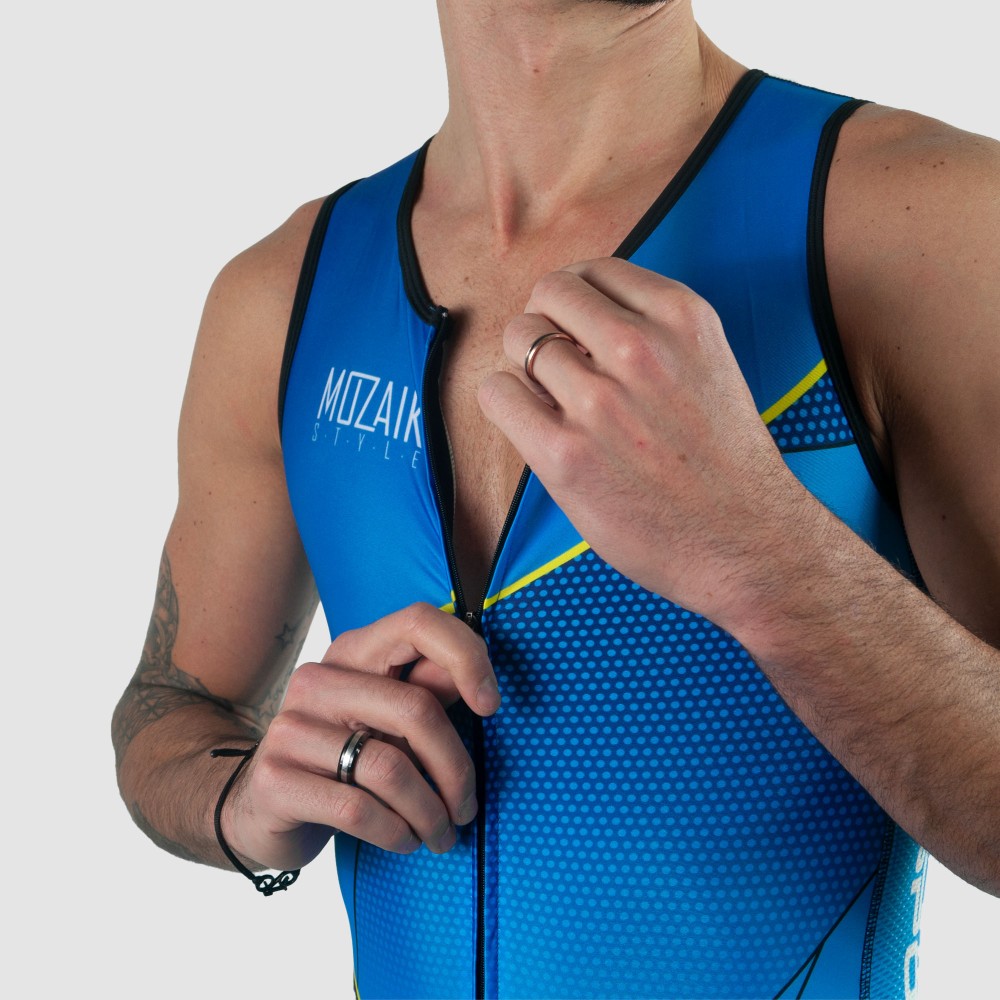 ARMOS propose une collection MOZAIK Style pour la performance. Cette trifonction est à la fois confortable et rapide. Elle évacue parfaitement la transpiration grâce à son tissu aéré sur les côtés. Son lycra sèche rapidement dès la sortie de l’eau. La peau très fine est adaptée pour les courtes distances et ne retient pas l’eau après la natation. Cette magnifique trifonction est idéale pour les distances du XS au M.