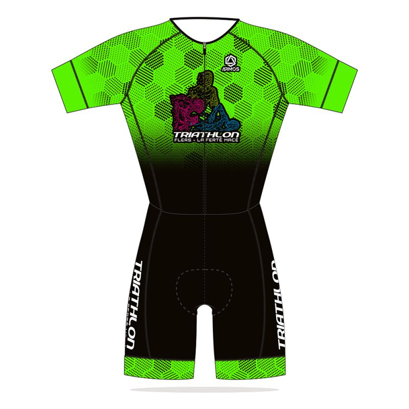 ARMOS a créé cette trifonction avec un design original et visible. Grâce à sa coupe et ses tissus, ce produit est spécialement adapté pour les courtes distances. Il possède des bandes grip aux cuisses pour un ajustement parfait. Son zip avant et ses coutures plates rendent ce produit plus confortable afin de pouvoir l’utiliser jusqu’à la distance M.